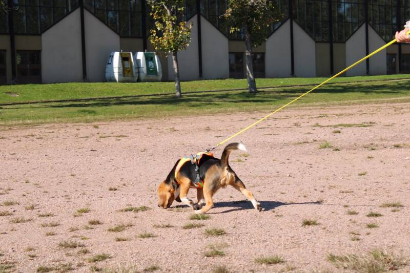 Cette activité demande au chien un niveau de concentration élevé pour lui permettre de différencier les différentes pistes, pour comprendre le cheminement et se diriger vers sa victime.